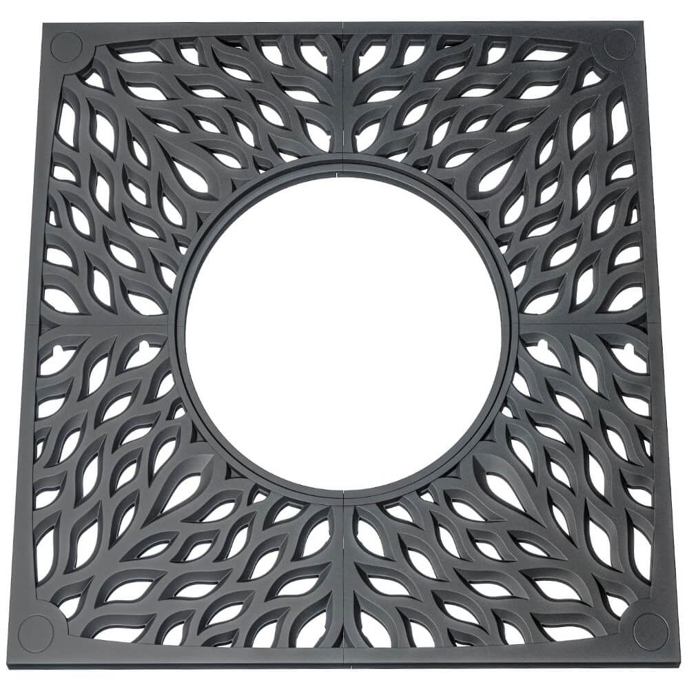 Прикорневая решётка Crust Черная 2х2м для городского благоустройства в Санкт-Петербурге. Состоит из 4-х отдельных элементов в форме кроны дерева, в углах элементов предусмотрены места для прожекторов, секции между собой стягиваются болтами. Скрытая стыковка секций является особенностью данной модели и создаёт целостный вид. Решетка укладывается на почву вокруг деревьев, чтобы обеспечить благоприятные условия для их произрастания. Использование приствольных решёток является важным моментом при благоустройстве городских улиц, парков и скверов. Они способствуют сохранению естественной рыхлости почвы, защите корневой системы растений и свободному проникновению влаги, воздуха и солнечных лучей.